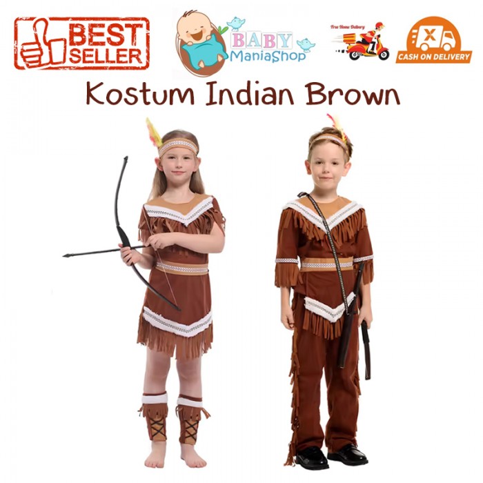 Kostum Indian Brown Baju Negara Native Amerika American Anak Boy Girl Laki Perempuan UN Day