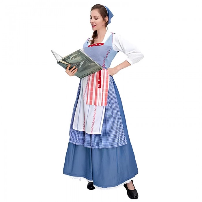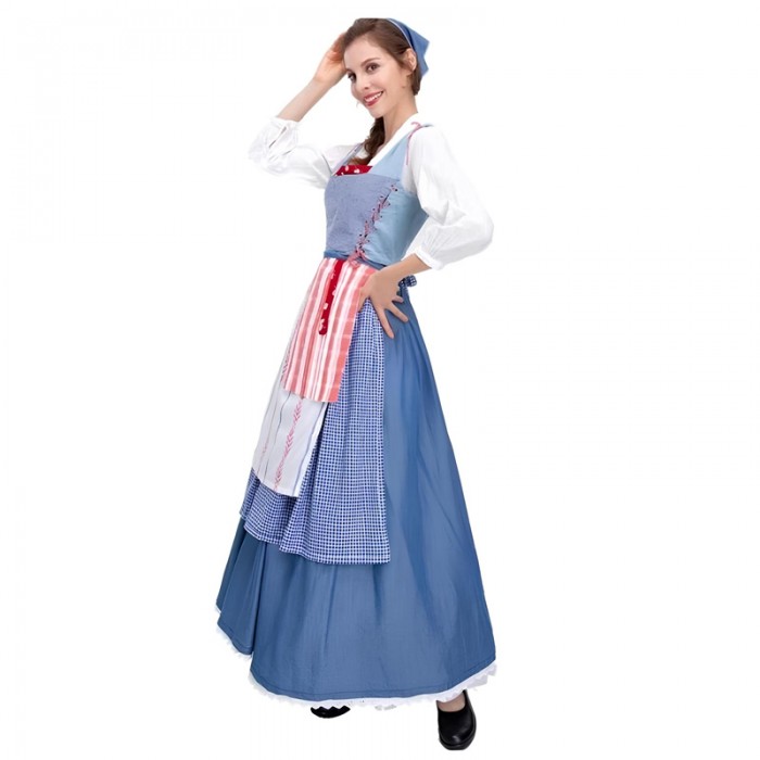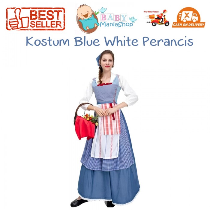 Kostum Blue White Perancis Belle Wanita Dewasa Baju Negara Eropa Perancis French Farmer UN Day
